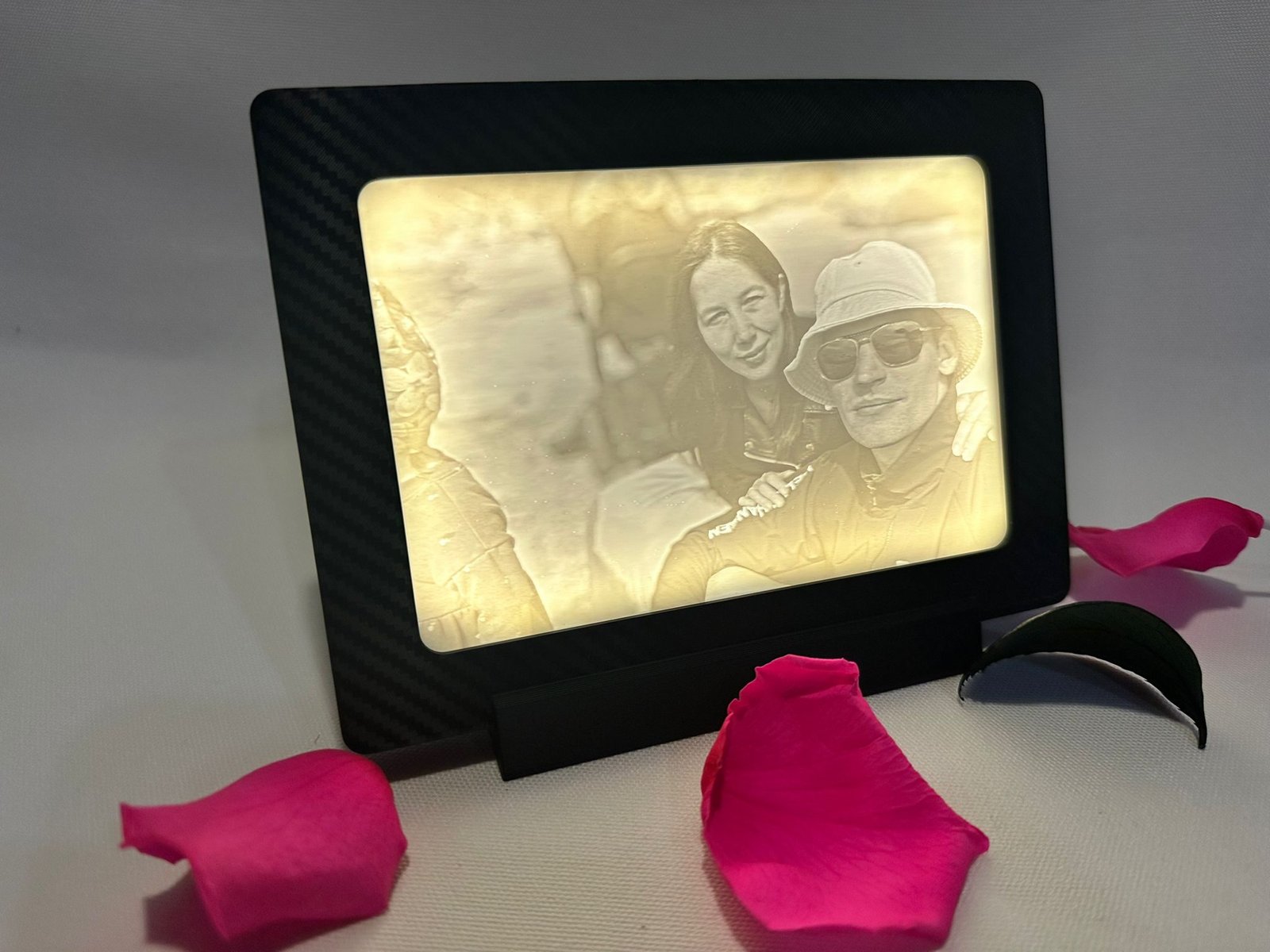 Gaismas bilde (lithophane)100x150mm melnā carbon rāmītī ar LED