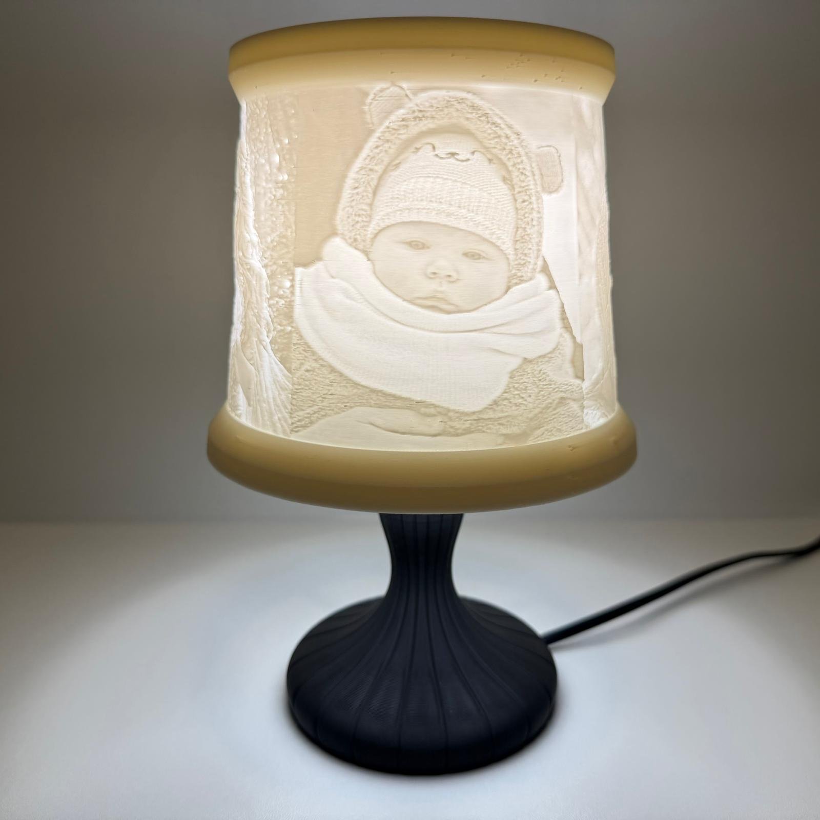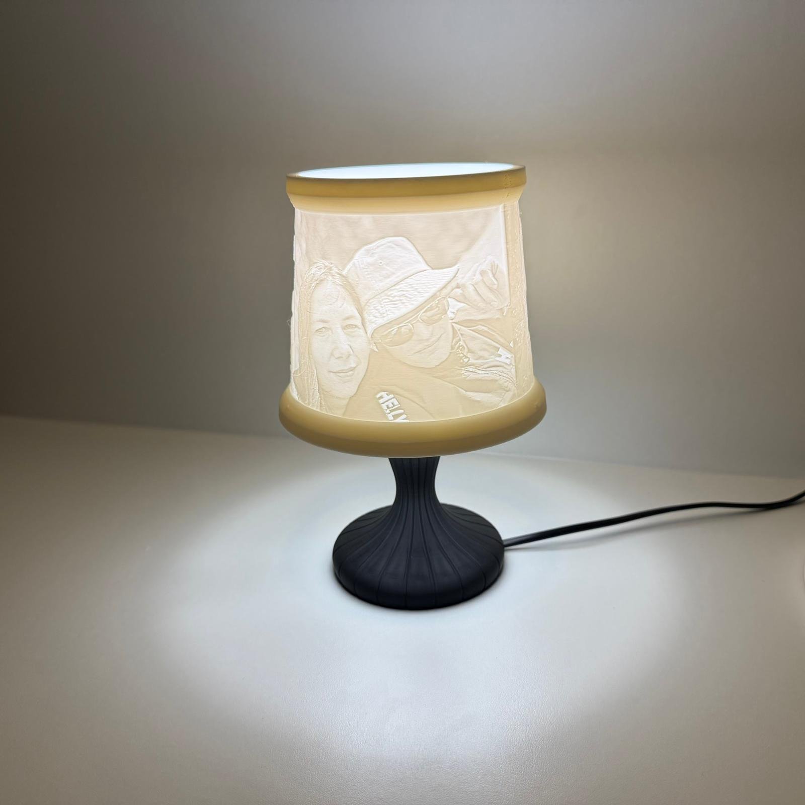 Personalizēta galda lampa, kurā Jūsu foto atklājas gaismā kā smalks reljefs. Silta gaisma, emocionāls efekts un unikāla dāvana īpašiem mirkļiem.
